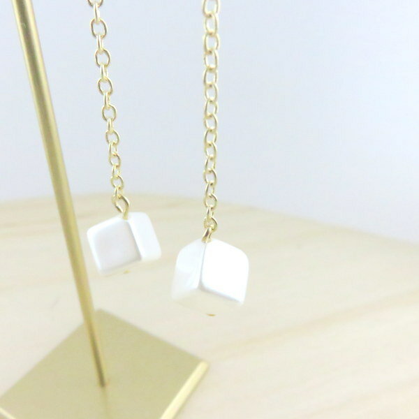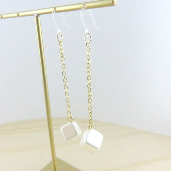 送料無料 レディース アクセサリー レトロ ポイント スクエア型のパールパーツをロングピアスにしました!流行の幾何型&シンプルながら、当店の得意のほっこり感でなごめます。
